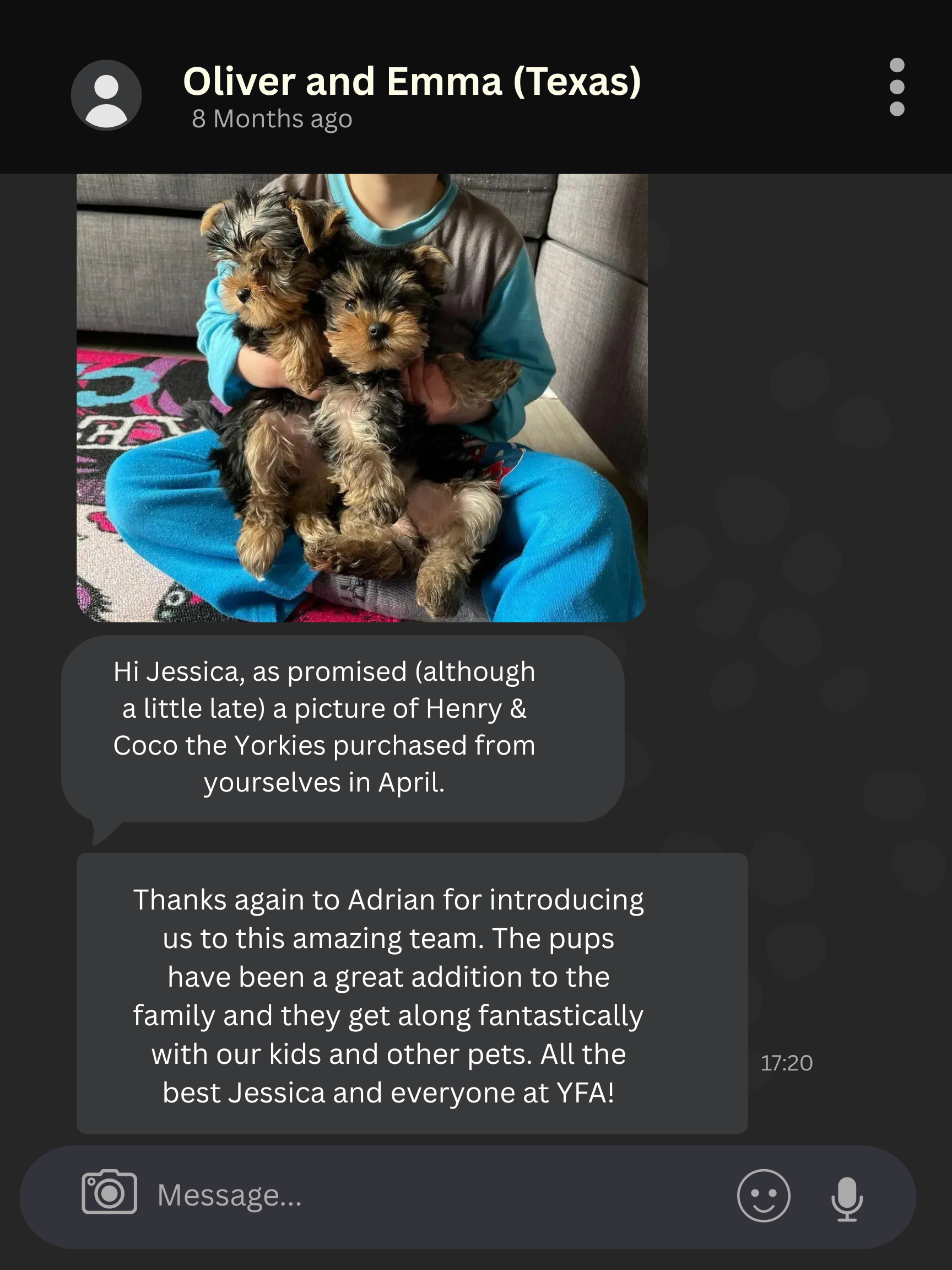 With over 9 years of experience. Be rest assured we will be there for you and we know all there is to know as concerns raising not just a healthy Yorkie Puppy but one which is sociable, friendly, great with kids and gets along with other pets.